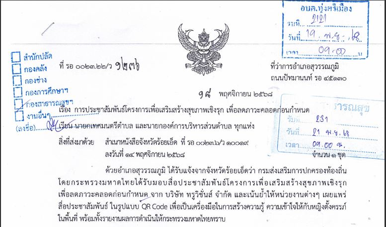 เผยแพร่สื่อประชาสัมพันธ์ ในรูปแบบ QR Code เพื่อเป็นเครื่องมือในการสร้างความรู้ ความเข้าใจให้กับหญิงตั้งครรภ์