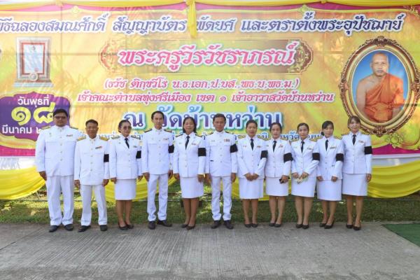 วันที่ 18 มีนาคม 2569 นางพูลศรี อ่อนภูงา นายกองค์การบริหารส่วนตำบลทุ่งศรีเมือง พร้อมคณะบริหาร หัวหน้าส่วนราชการ พนักงานส่วนตำบล พนักงานจ้าง และสมาชิกสภาองค์การบริหารส่วนตำบล เข้าร่วมพิธีฉลองสมณศักดิ์ สัญญาบัตร พัดยศ และตราตั้งพระอุปัชฌาย์ พระครูวีรวัชราภรณ์ (เจ้าคณะตำบลทุ่งศรีเมือง เขต 1 เจ้าอาวาสวัดบ้านหว่าน)