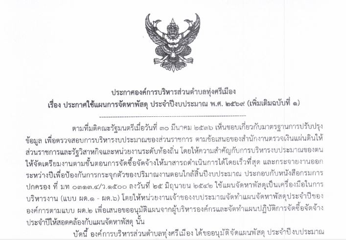 ประจำปีงบประมาณ พ.ศ. 2569 (เพิ่มเติมฉบับที่ 1)