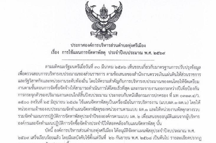 และเกณฑ์การใช้สิ้นเปลืองน้ำมันเชื้อเพลิงขององค์การบริหารส่วนตำบลทุ่งศรีเมือง อำเภอสุวรรณภูมิ จังหวัดร้อยเอ็ด ประจำปีงบประมาณ พ.ศ. ๒๕๖๙